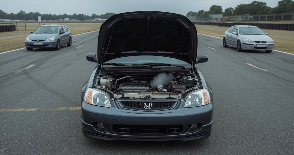 Kamēr abi pārējie auto jau bija apstājušies, Honda Civic turpināja darboties. Aptuveni pēc divām minūtēm parādījās acīmredzamas pārkaršanas pazīmes: sāka dūmot dzesēšanas sistēmas zona, un motora apgriezieni sāka kristies. Loģiski varētu gaidīt ātru iznākumu, taču automobilis joprojām neapstājās un turpināja strādāt, lai gan bija skaidrs, ka dzinējam tas rada ļoti smagus bojājumus.